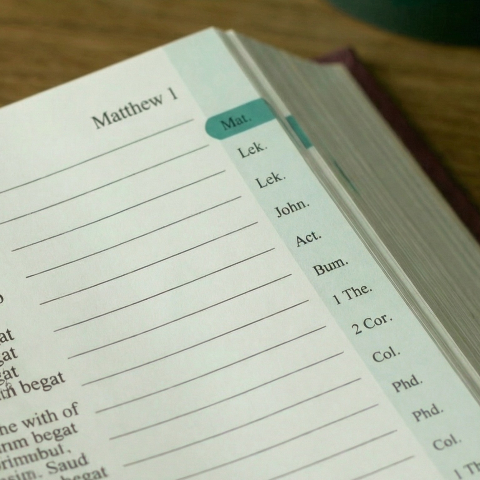 When your pastor says "turn to Colossians," you shouldn't be frantically flipping pages while everyone else is already reading. Perfect Bible has built-in page tabs — so you land in the right place every time.